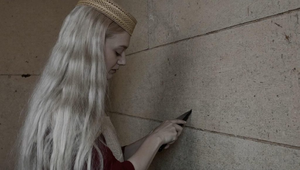 - Приложить верх полотна к потолку, совмещая с вертикалью. Лёгкий нахлёст на потолок для подрезки.